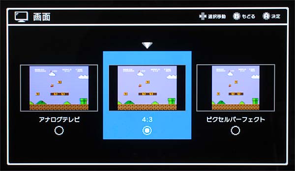ファミコンの表示画素数が横256ドット×240(実質224)ラインですので、比率が4:3.75(3.5)で画面全体が正方形に近い表示になります。