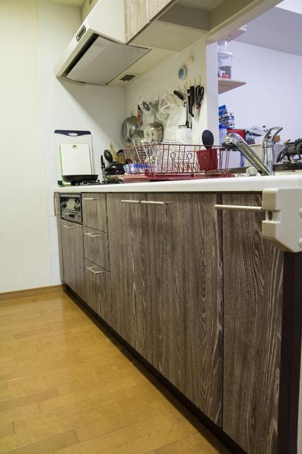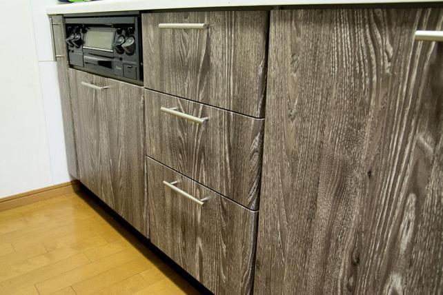 共に、収納の扉がオレンジっぽい色のダサい感じだったのでラッピングシートを使って雰囲気を変えることにしました。