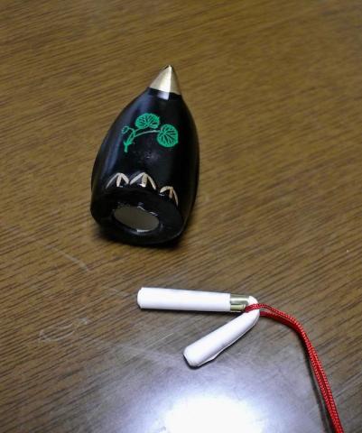 再び適当な紙に赤い糸を巻き付けてから、元の穴に封入してストラップとして再利用できなくもありません。 但し八咫烏君を逆さ吊りにしてしまうことになりますが。