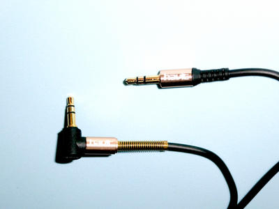 スピーカー側にL字プラグで、スマホ側にストレートプラグを使用しています。