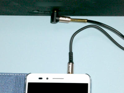 スマホとAUX入力付きのポータブルスピーカーを本ケーブルで接続してみました。