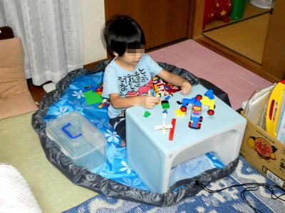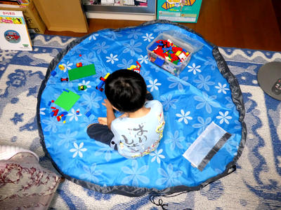 広げてブロックで遊んでいる図。