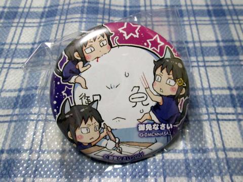 御免なさい先生の 8年前に出た初単行本の新装版発売に合わせて 2016年9月末から「ふたたび、御免な祭」が始まってまして、そのガチャガチャの第2弾で手に入る缶バッジの一つです。