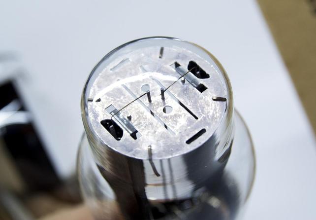 ボタンステムなので、ガラスの基部からまっすぐ端子が立ち上がってます。