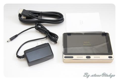 GOLE1本体、ACアダプター、HDMIケーブル、英語マニュアルが入っています。