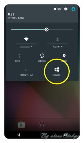 Androidから Windowsに切替える時は、画面上端からスワイプし設定画面を開くと切替スイッチがあります。