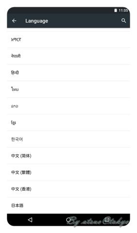 Androidは 68ヶ国語に対応しており、設定内にある「language」から「日本語」を選択するだけです。
