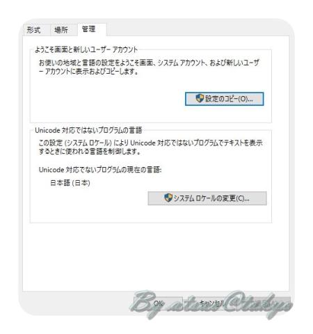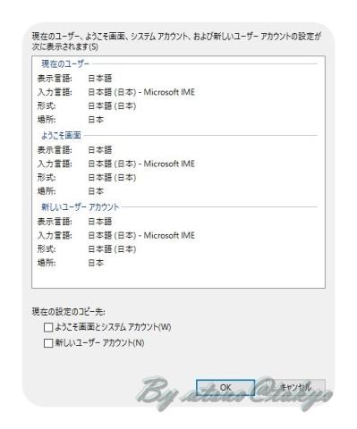 しかし「地域」-「管理」で「設定のコピー」をクリックして開くダイアログで、「表示言語」が[日本語]と表示されておらず、まだ完全に日本語が行えませんでした。