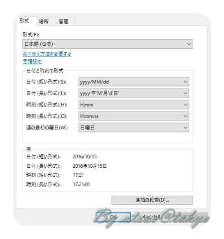 設定した箇所を見直すと他の Windows 10 PCでは「地域」-「形式」の「形式(F)」が「形式(F)」の横に[日本語(日本)]と表示され内容が「Windows の表示言語と一致させます(推奨)」と表示されているところが、「形式(F)」横には表示が無く内容に「日本語(日本)」と表示されています。