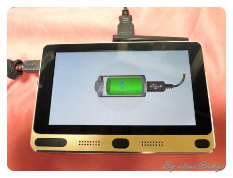 ただし microUSB経由で充電を開始する時だけ、数秒間電池残容量と共に USB経由で充電されている事が画面が表示されます。