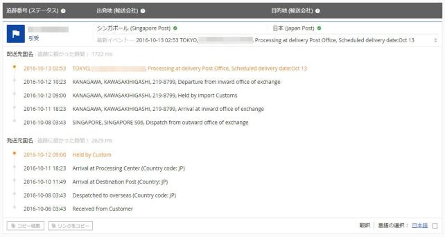 しかし、これで今度こそ抱えている問題は解消されたようで、9月末に発送の案内(tracking number)が届き、10月6日には荷物の追跡も行えるようになり