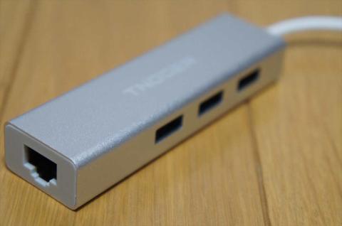 1つのアダプタに、USB3.0の3ポートハブと、ギガビットイーサネットがある複合アダプタになります。