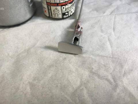 実際はサフの上にベースのブラックを塗装し、その上にこのステンレスシルバーを塗装しています。