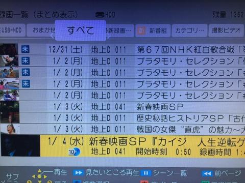 3年位前から年末年始のドラマや総集編、シネマなど見たいものを見逃してきた・・・