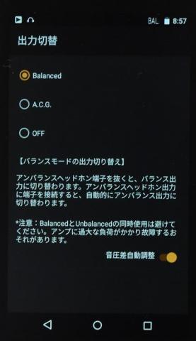 バランス出力とACG出力の切り替えを試していたところ、