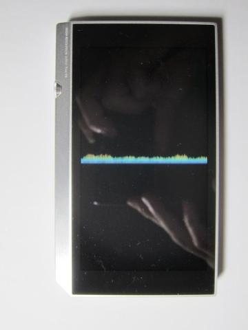 充電ができたところで,電源をON.電源ボタンを長押しすると,Androidの画面表示が始まります.その後(1分くらい?),波形表示になり,しばらく(3分以上?)そのままの状態が続きます.なので,気楽に待ちましょう! DAP感覚でいると,イライラします.