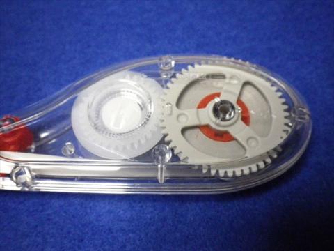 横文字用ですがかなり構造が複雑です 白い修正テープは透明テープとの2層構造で使用分の透明テープは巻き取られる構造ですね