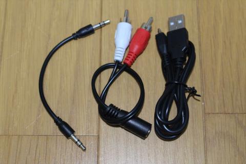 オーディオケーブル、充電用のMicroUSB-USBケーブルが付属しています。