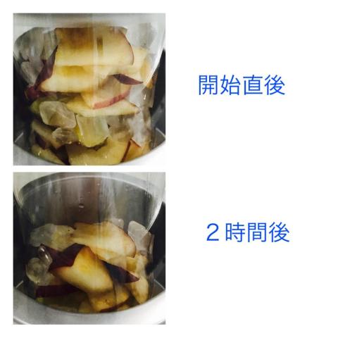 氷砂糖はだんだん溶けてくるのですが、ビネガーのかからなかったリンゴ達が黒ずんでいきます。