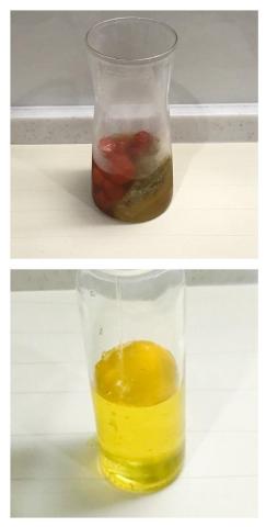 出来上がり。ビネガーの色は鮮やかな黄色。