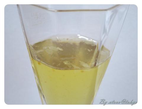 完成したガラスボトルを取り出すとあれだけ盛り上がっていた材料も、すっかり浸かっています。