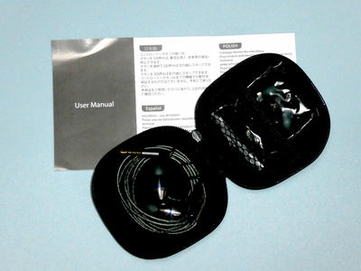 ハードポーチの中にイヤホン本体と交換用イヤーピース。