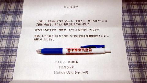 TBSラジオの平日お昼の帯番組「たまむすび」の水曜日のコーナーにて頂けるノベルティの「ボーゥペン」です。