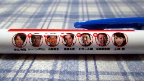 青が基調のボーゥペン。出演者の顔写真が入ってるんです!