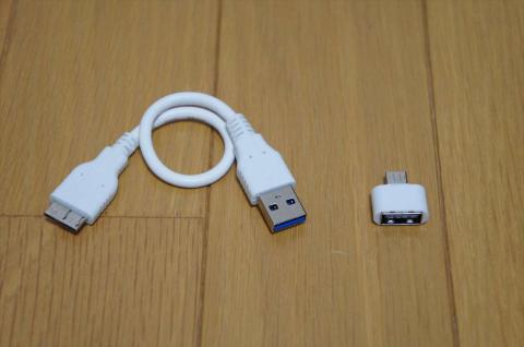 左のケーブルに、右側のMicroUSBアダプタを接続することで、Androidなどのスマートフォンやタブレットでも使えます。