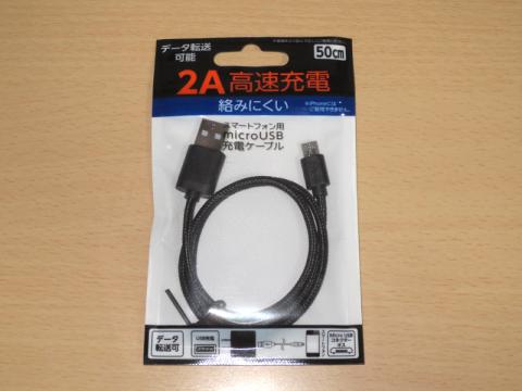 ●セリア 2A高速充電 絡みにくい スマートフォン用microUSBケーブル データ転送可能 ブラック