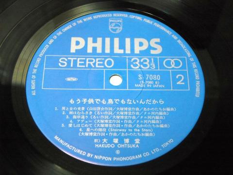LPレコード 大塚搏堂「もう子供でも鳥でもないんだから」 PHILIPS S-7080 1979.4.25発売