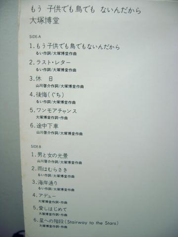 大塚搏堂5枚目のアルバムです ”もう子供でも鳥でもないんだから" "星への階段" 辺りが記憶に残りますね