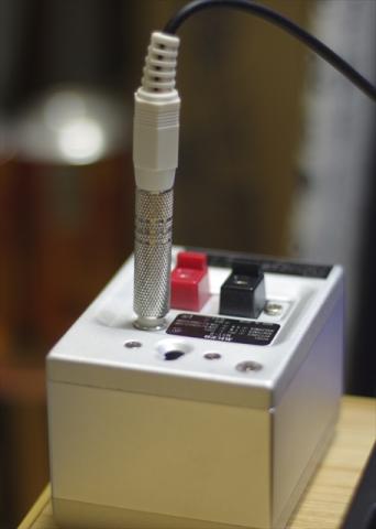 そのヘッドホン出力をステレオミニで繋いで音を出してみました。