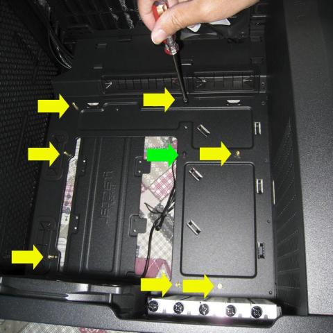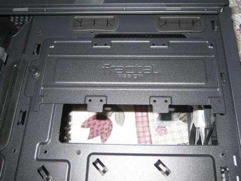 2.5インチドライブ取り付けプレートを外しバックプレートを位置決め中、全く問題ないですね。