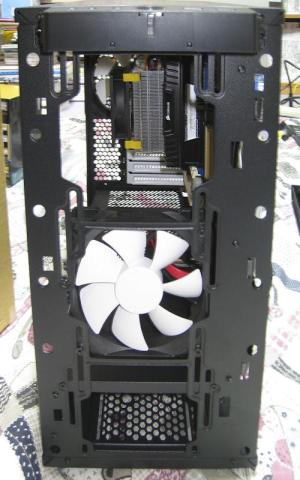 前面パネルを外した本体側です、標準では12センチのファンが前面、背面に一つずつ。