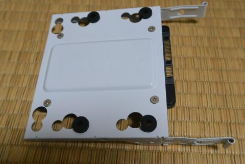 ところで、組み立て作業その1では、SSDを2.5インチドライブ用の取り付けボードに設置しましたが、恒常的に使うことを考えると、吸音素材が貼られたパネルで密閉する形となり、夏場などはドライブの温度上昇が不安です。