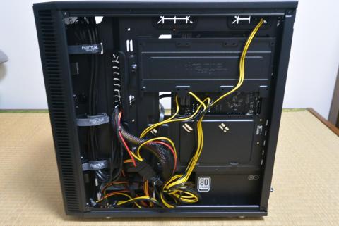 その分、右サイドパネルの内側は若干ケーブルでごちゃごちゃしますが、パネルで隠れてしまうので問題ありません。
