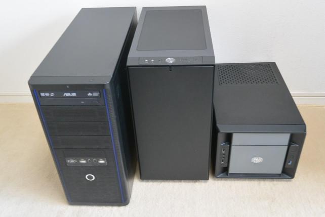 これに対し、通常のATX用ケースの場合は、高さと奥行きがあるため、デスク上に置いたときは圧迫感が出てしまいます。実際、このケースをメインマシンとして使っていたときは、デスクの下に置いていました。