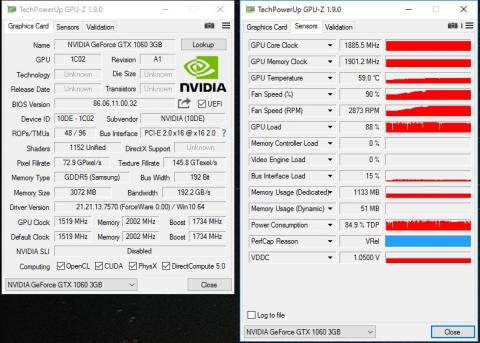 おー、確かにGPUコアクロックが1885.5MHz出てますね。