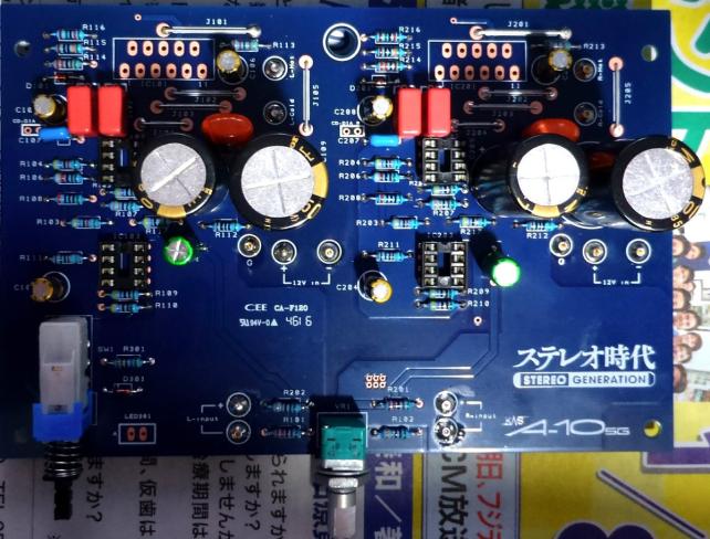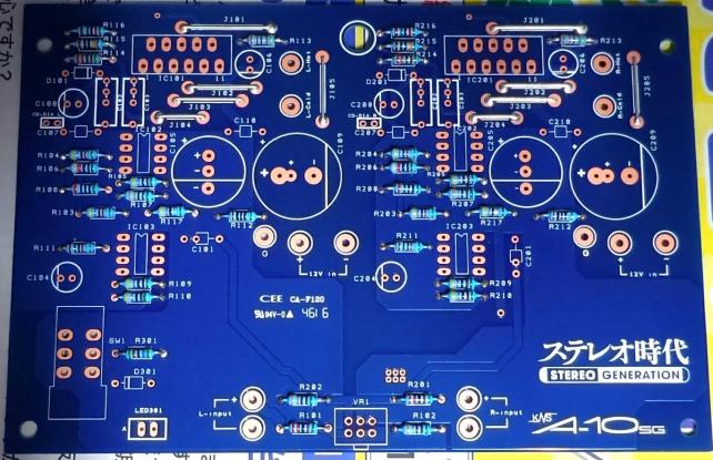 A-10SGの部品パックの入手先ですが、 ステレオ時代オフィシャルブログ によれば本基板設計者のスタッフがいる事で知られる港北ネットワークサービス と 共立電子産業 の2つがある模様。もちろん手持ちの部品や他店にてバラで入手してもOKでしょう。