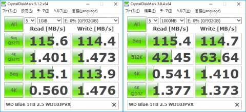 という訳で一応ベンチ。同じような価格帯の別メーカーということでWD Blueと比べてみよう。