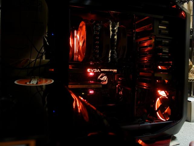 うちのケースのお兄さんですね。Corsair Graphiteシリーズのケース にR.O.GのマザーにThermaltake Riingファンてなんか考えることはみんな同じですね。