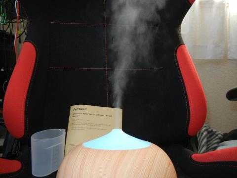 水にアロマオイルを混ぜるとアロマデュフューザーになります。…単に香りの霧が出るだけです。