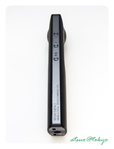 360度カメラなのでどの向きで撮っても良いですが、撮影した画像の中心(閲覧時正面になる位置)はシャッターボタンのある面の反対側になります。