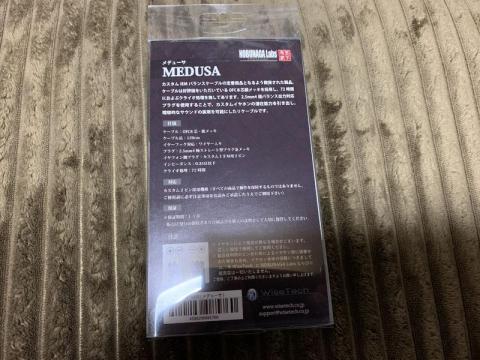 それっきり特にこのケーブルに触れる機会は無かったのですが、昨年11月に開催された「ヘッドホン祭り 2019 秋」の物販会場で特売品が用意されていて、他に欲しいものも無かったのでなんとなく買ってしまったのです。もっとも、同じ日にWAGNUS.製の2.5mm4極-CIEM 2Pinケーブル、Ginger Lilyも購入していたため、こちらのMUDUSAは試聴すらすることないままでした。