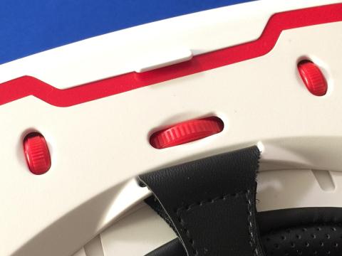 頭に装着した感想は、やはり前が重いことですね。後ろ側にもウエイトをつけたりして中央に重心をもってきたいところです。