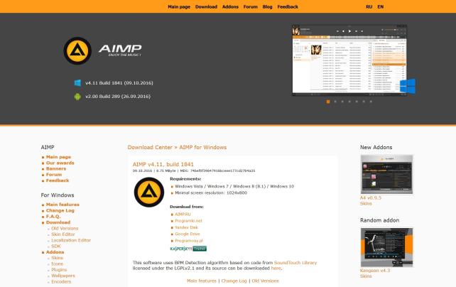作者のWebサイトでは視覚効果のプラグインやスキンがたくさん公開されているので、「Winamp風」などに見た目を変えて楽しむ事も出来ます。