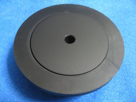 黄銅(真鍮)の周りをゴムでコーティングしています 真鍮に黒く塗装してますね ターンテーブルに乗せるとスピンドルシャフトに当たってガチャンと音がしますが何とかならないのかなと思います。