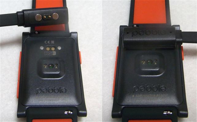 心拍計の上部にあるのが、マグネット式の充電用コネクタ。専用ケーブルでなければ充電できない点にやや不便さを感じる。Micro USBに差すタイプの変換コネクタがあれば便利なのだが。