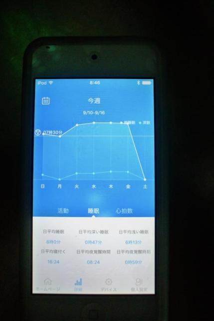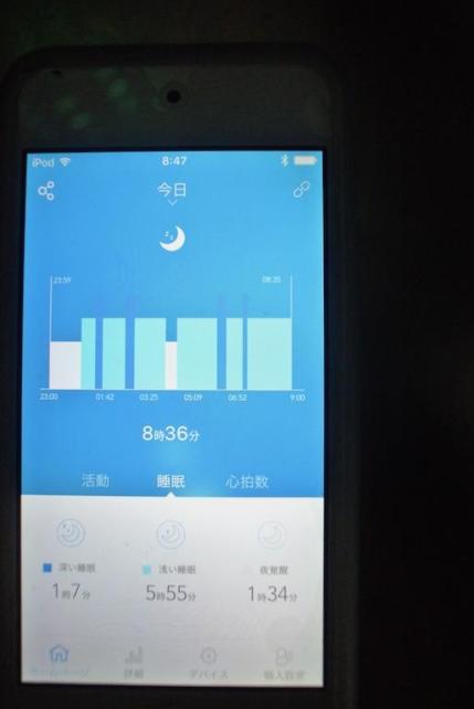 就寝時にユーザーがモードを切り替える手間がありますが、アプリの深睡眠と浅い睡眠の比率をグラフ化表示が、自分の実感とリンクしておりました。